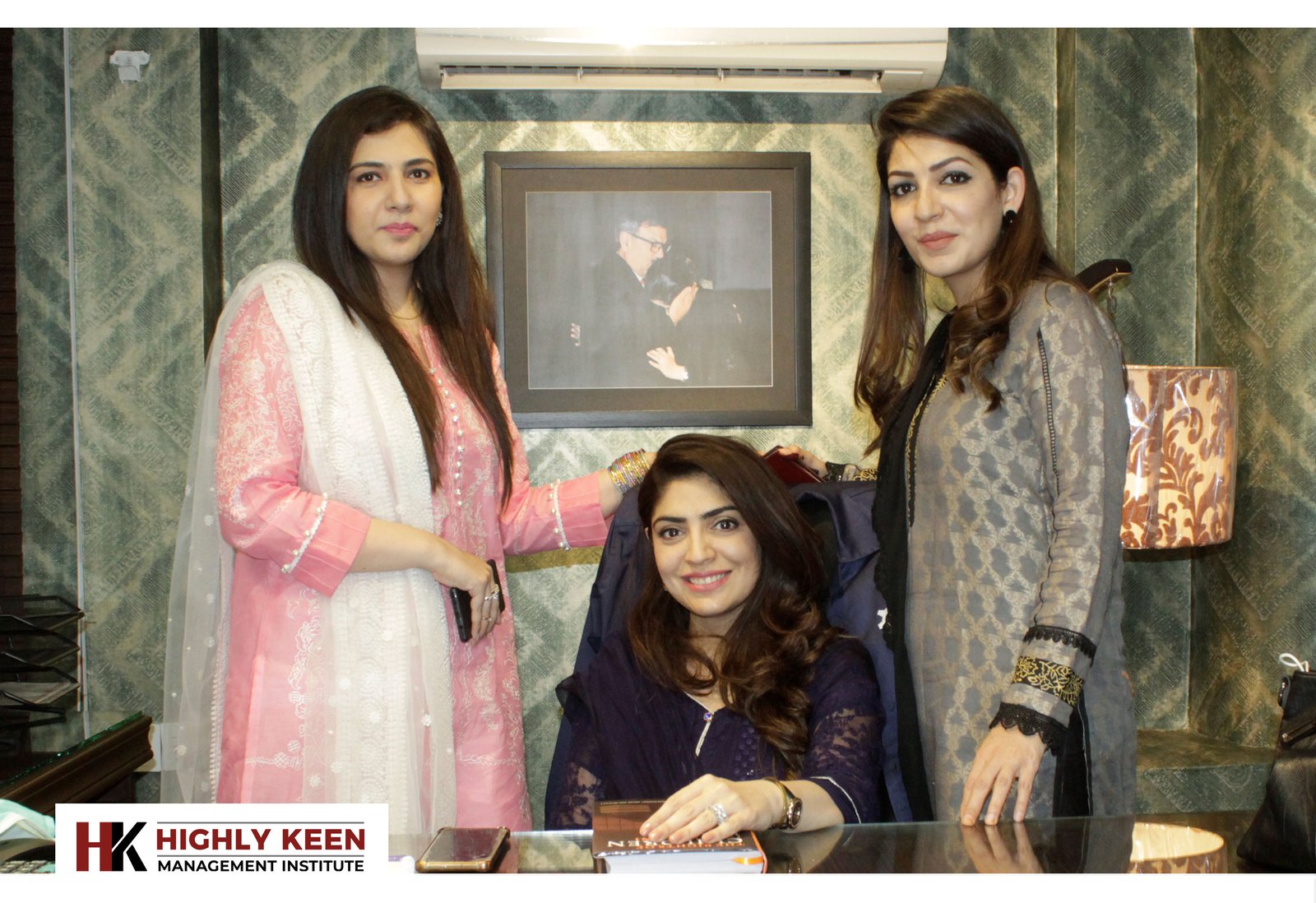 Ms. Sara Afzal, CEO - Highly Keen Management Institute captured here along with Our Lead Trainer M Imran Khan and Our respectable colleague Muhammad Salman Butt from Espire Consult, dur