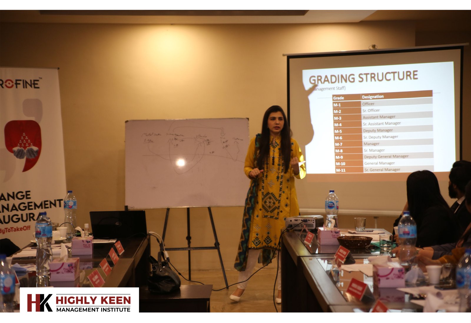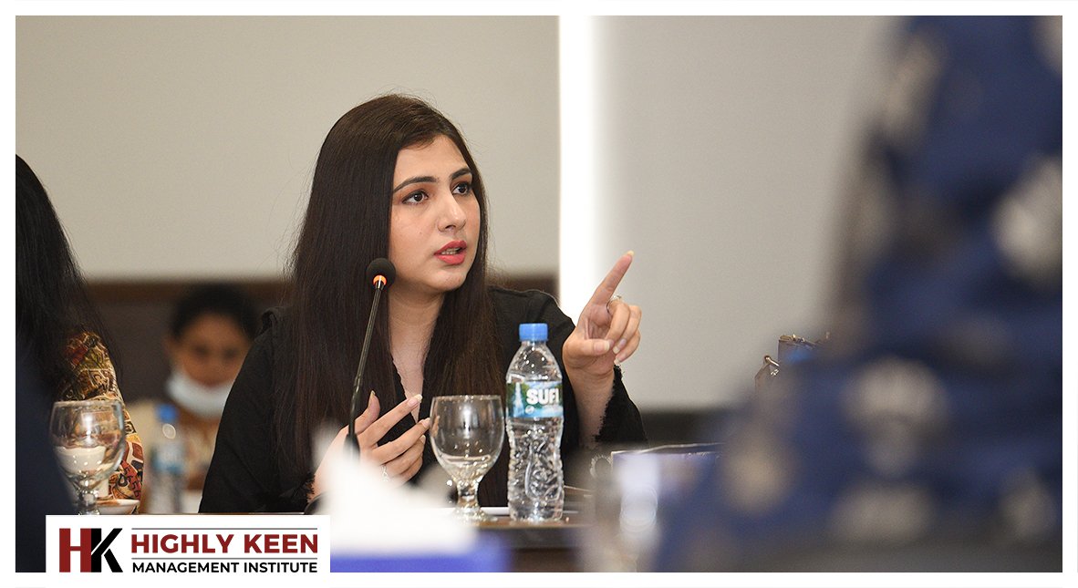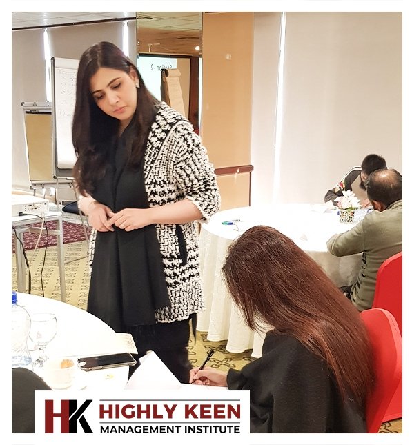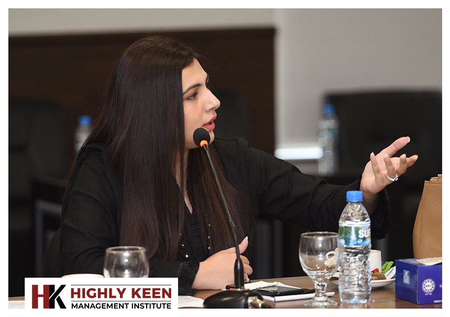 Consulting wing of Highly Keen Management Institute on the go. Ms. Sara Afzal, CEO & Principal Consultant at Highly Keen Management Institute captured here during a client's facilit