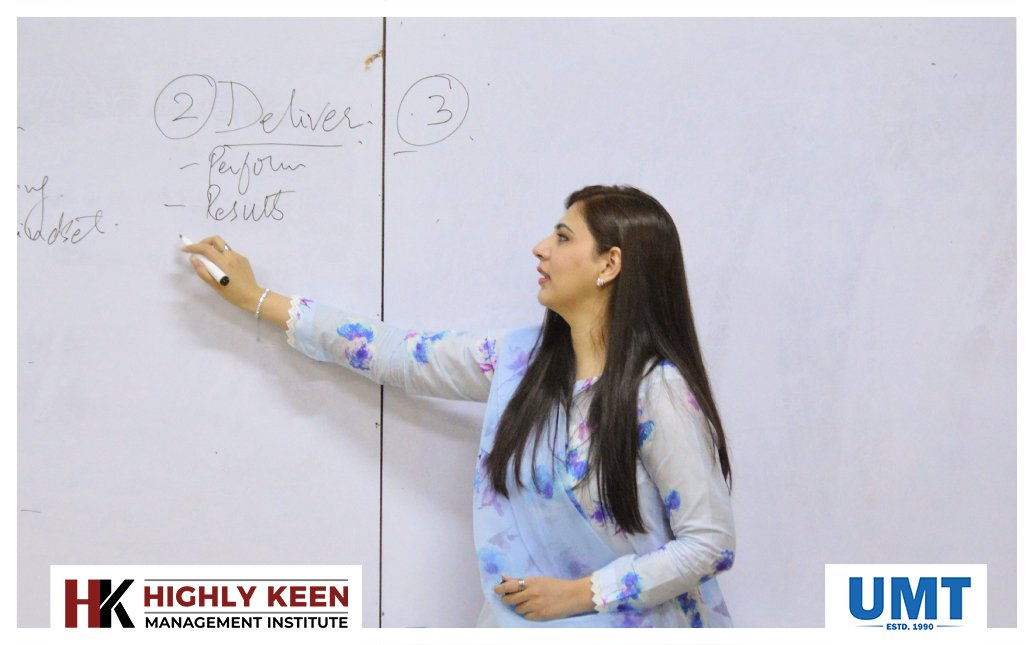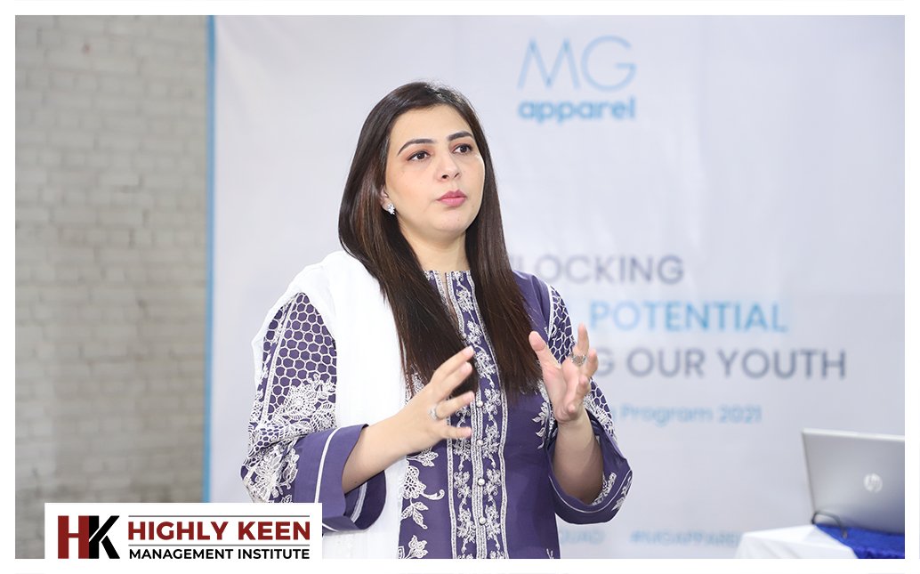 Ms. Sara Afzal, the CEO of Highly Keen Management Institute is captured here while conducting a training session on “Being a Star Performer at Work” for the newly appointed batch of
