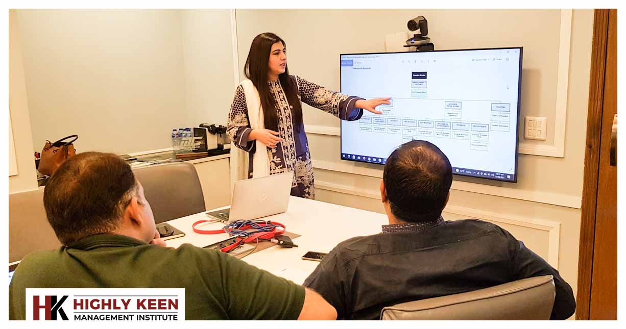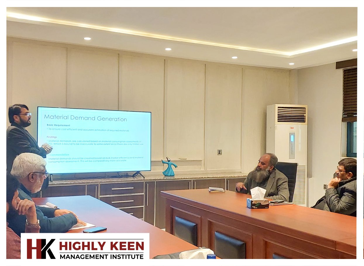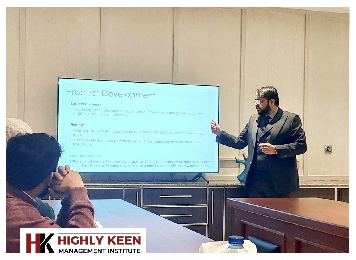 Here is Mr. Imran Khan, Lead Trainer & Consultant at Highly Keen Management Institute, captured while conducting the presentation on "Process Walk Findings" to the Directors, GMs an