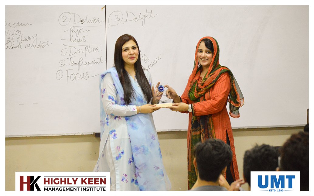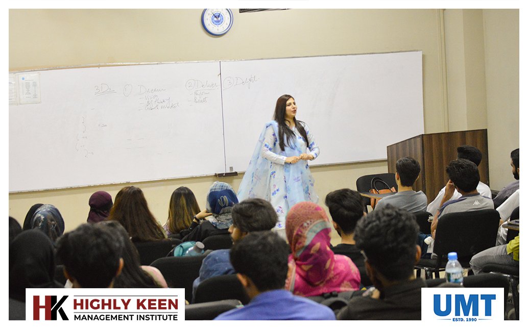 Ms. Sara Afzal, CEO Highly Keen Management Institute, gave a power talk to students at University of Management and Technology.