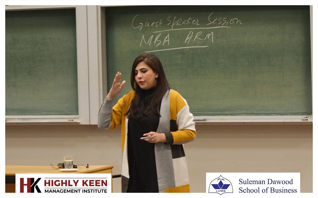 Ms. Sara Afzal, CEO - Highly Keen Management Institute visited LUMS (School of Business) as a guest speaker for Business Students’ class in human resource management on invitation of