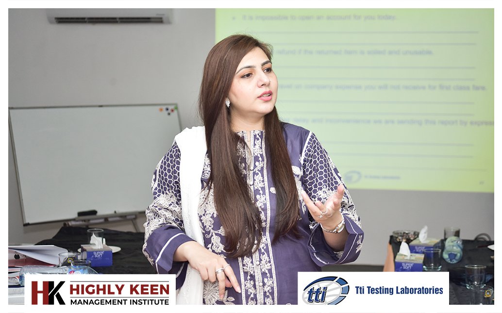 Ms. Sara Afzal, CEO - Highly Keen Management Institute and Our Principal Trainer & Consultant captured here while conducting the Day # 01 of Advance Business Communication Training